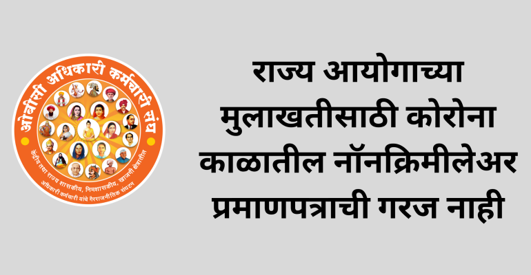 राज्य आयोगाच्या मुलाखतीसाठी कोरोना काळातील नॉनक्रिमीलेअर प्रमाणपत्राची गरज नाही संघटना प्रतिनिधी : कोविद्ध-१९ (कोरोना) च्या पार्श्वभूमीवर मार्च, २०२० पासून शासकीय कार्यालये बंद होती. त्यामुळे महाराष्ट्र लोकसेवा आयोगाच्या परीक्षांना बसलेल्या उमेदवारांना नॉनक्रिमीलेअर प्रमाणपत्रे मिळविणे शक्य झालेले नाही. त्यामुळे, उमेदवारांना नॉनक्रिमीलेअर प्रमाणपत्र नसल्याने आयोगाच्या मुलाखती दरम्यान सन २०१९-२०२० व २०२०-२०२१ या वर्षाचे नॉनक्रिमीलेअर प्रमाणपत्राची मागणी न करता, […]